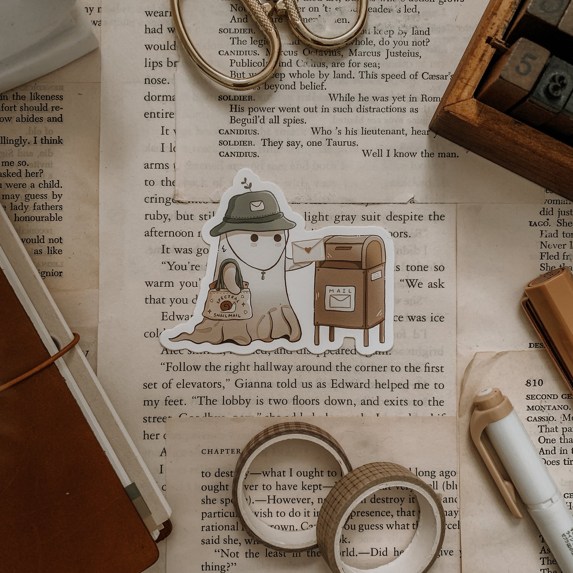 die cut sticker of my oc ghostie featuring art from the 2026 Calendar Cards